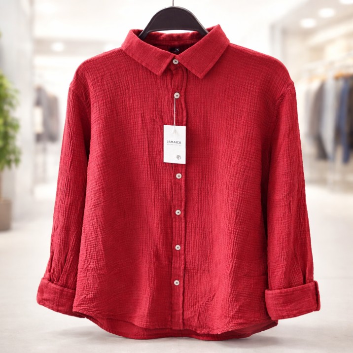 This stylish casual shirt in a striking red hue offers a bold and modern look. Made from lightweight, ribbed linen, it provides all-day comfort and breathability. Perfect for everyday wear or special occasions, it pairs easily with jeans or classic trousers.
