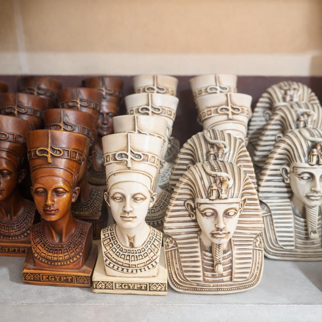 A distinctive decorative piece inspired by ancient Egyptian civilization, this elegantly designed statuette of Queen Nefertiti adds a touch of luxurious heritage to any space.