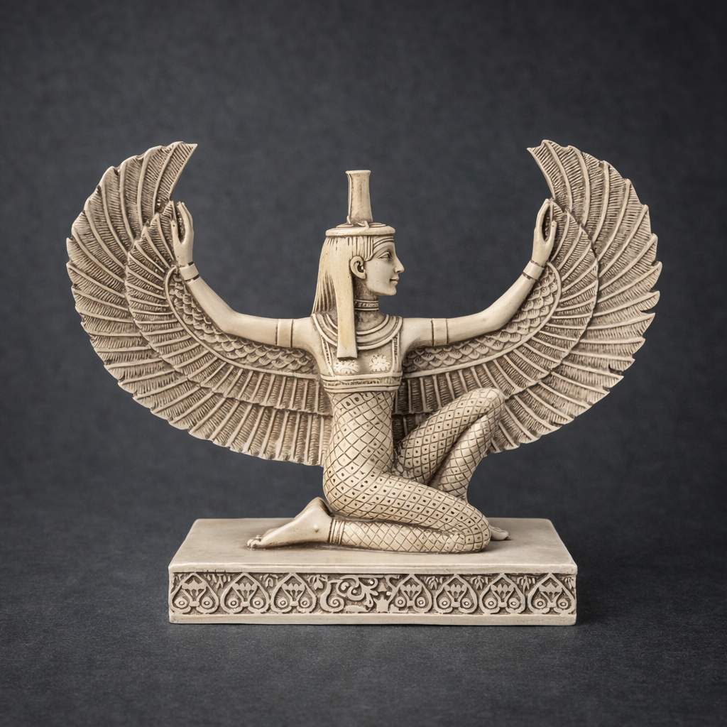 A distinctive Pharaonic decorative piece depicting the goddess Isis with her outstretched wings, one of the most famous symbols of protection and power in ancient Egyptian civilization.