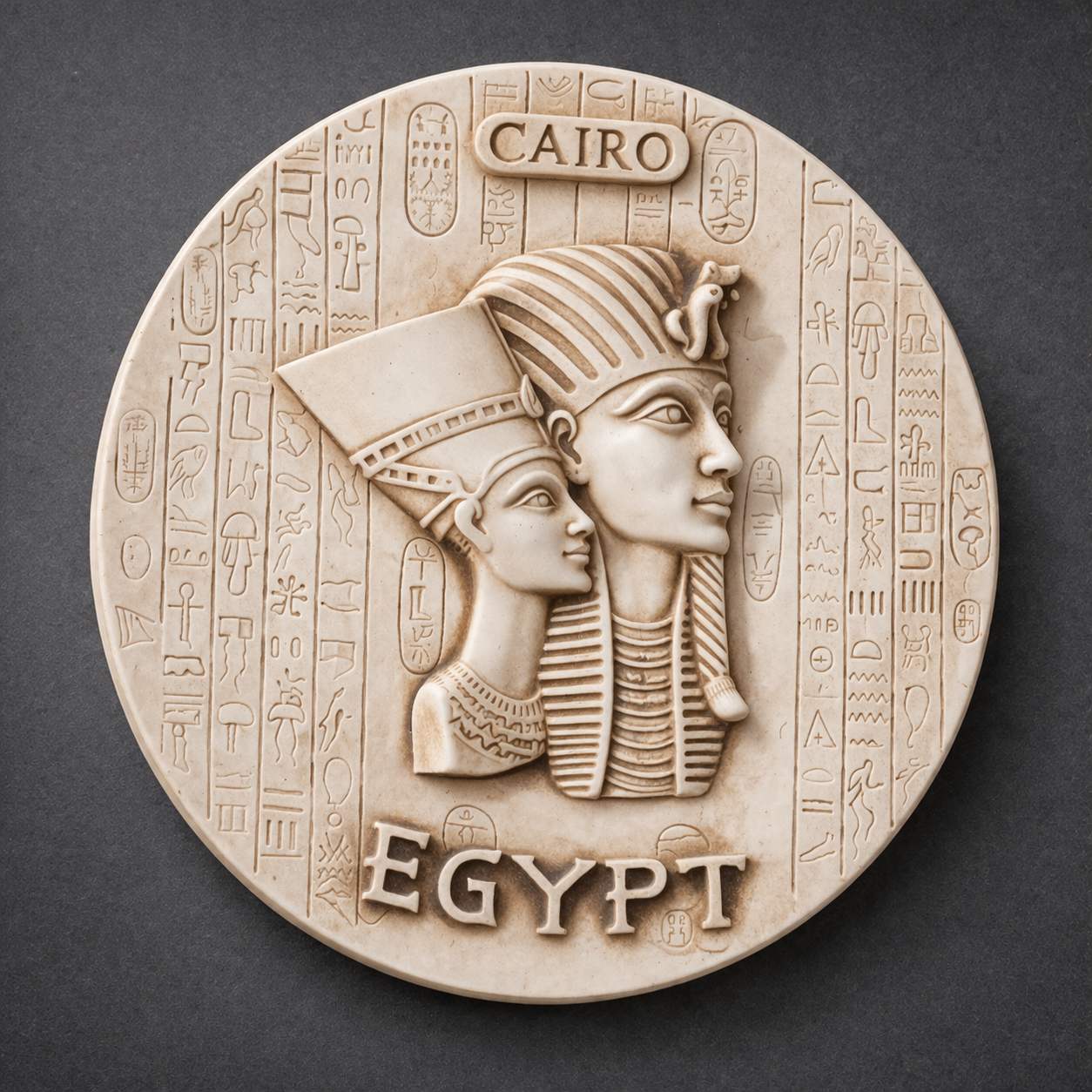 Product Description:This decorative piece, inspired by ancient Egyptian civilization, features Queen Nefertiti and King Akhenaten in a striking design with intricate details that reflect the splendor of Pharaonic art.
